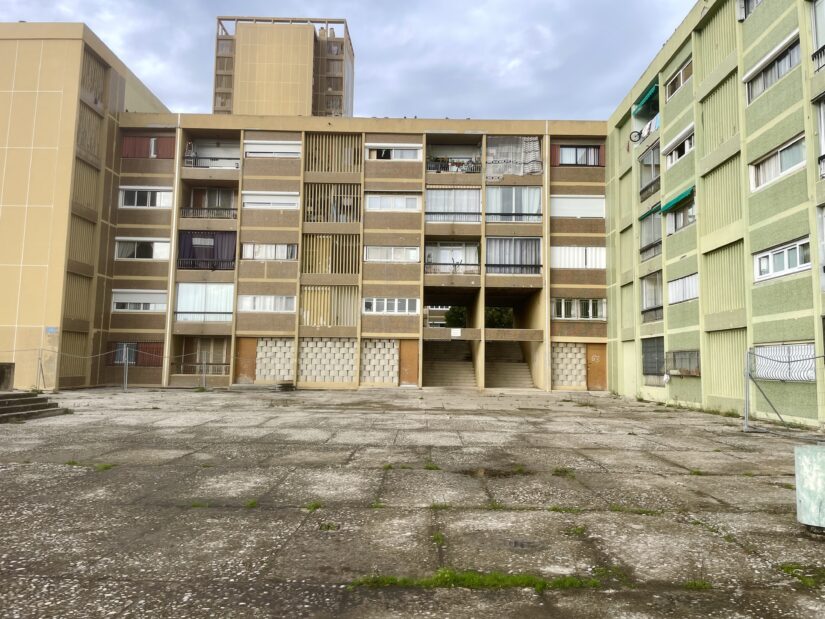 La Maurelette est l’un des vastes programmes construits dans les années 1960 dans la campagne marseillaise. Des immeubles de quatre étages et des tours s’articulent autour de la bastide d’origine, toujours là ainsi que son bassin et son majestueux escalier en pierre. Certains surplombent la Méditerranée, qui offre un horizon lumineux. Côté face, le décor est plus sombre. La bastide se décrépit, le parc est désert, les commerces ont tiré le rideau et l’état de nombreux immeubles laisse à désirer (bonus). Les classes moyennes ont quitté les tours dans les années 1980, progressivement remplacées par des populations plus pauvres.