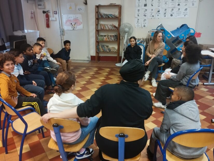Nathalie Payet, la professeure de français des 6eC observe un effet bénéfique de l’atelier sur ses élèves. « Il leur permet de développer l’empathie, l’assurance, la confiance en soi. Ils développent des compétences dans les différentes disciplines, comme le Français. Dans la vie également, pour vivre ensemble ». Même écho de l’AEHS (accompagnant d’élèves en situation de handicap), qui assiste en classe Isaac et Nadim. Elle observe un effet sur le second, qui ose davantage prendre la parole. Et sur la classe, bien plus bienveillante à leur égard.