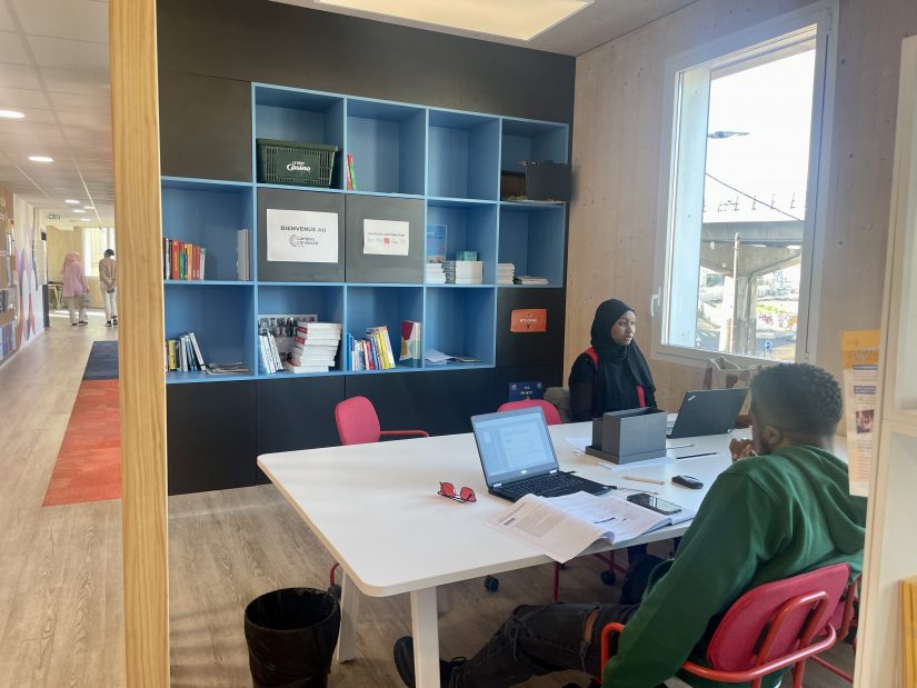 Un peu plus loin, Haddidja, la plus âgée, raconte que Campus Co est parfait pour elle qui reprend ses études après une interruption de neuf ans. Âgée de 27 ans, cette maman de deux enfants, enceinte en terminale, s’était arrêtée au bac.