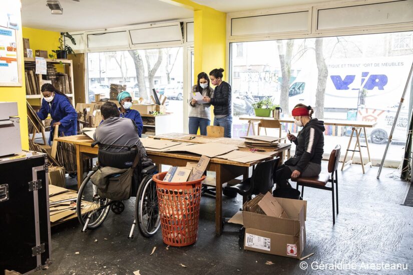 Ici, dans le 18e arrondissement, comme à l’atelier de Saint-Denis, en Seine-Saint-Denis, ainsi qu’à Nanterre, dans les Hauts-de-Seine, l’association Carton Plein, via son dispositif « premières heures », salarie des personnes très éloignées du marché de l’emploi. Elles sont en période d’errance ou sans domicile fixe et ont besoin d’ « un coup de pouce », comme nous l’explique Johanna Sanson, responsable de la communication de la structure d’insertion professionnelle. <!–more–>