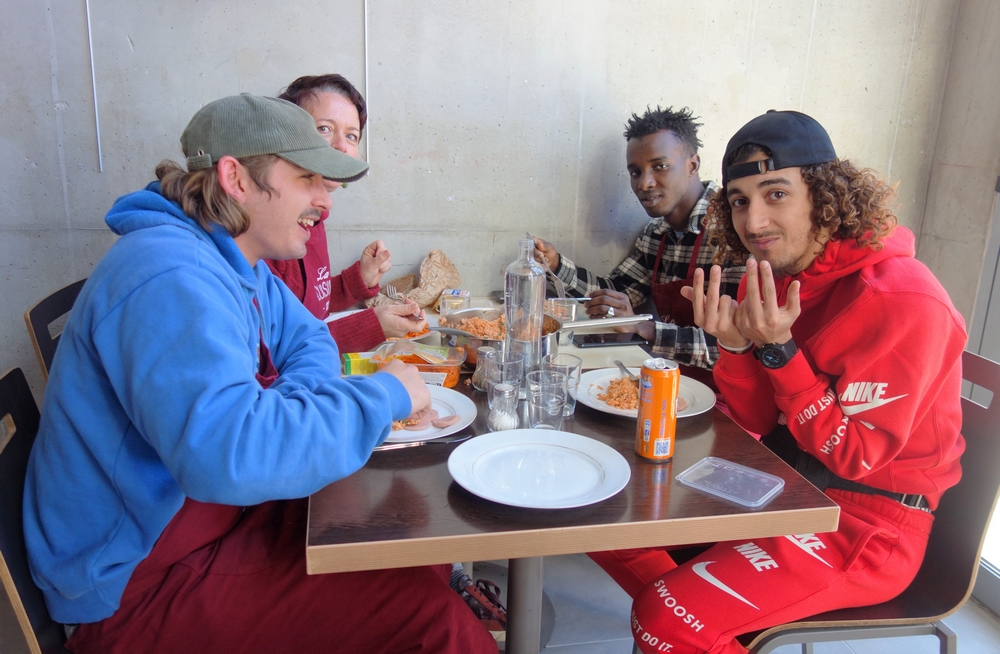 Ce qui frappe l’équipe de la Cuisine du 101 est la générosité des visiteurs, malgré leurs difficultés. « Ils préparent généralement de grandes quantités afin d’en ramener à leur hôtel et nous proposent systématiquement de goûter et de s’attabler avec eux. Et si tu ne t’assois pas, ils le prennent mal ! », plaisante, non sans sérieux, Benjamin. Et Marika d’ajouter : « Ils ont un grand sens de la générosité alors qu’on sait qu’ils sont dans le besoin ». Une belle leçon d’humanité et de convivialité.
