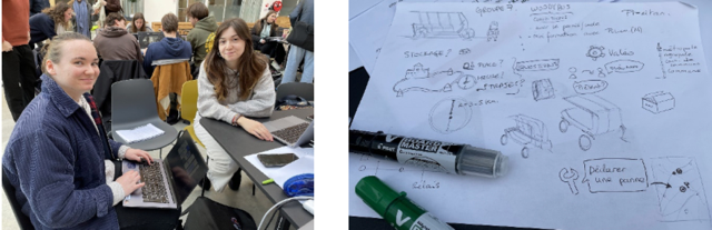 Floriane et Emma, étudiantes en design membres de l’équipe de travail sur le Woodybus @PDS