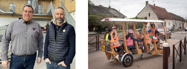 Michael Bezard, de l’entreprise B C’Cool, et Samuel Berthelot, directeur de l’entreprise Humbird qui produit le Woodybus.