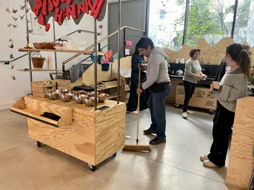 Kipawa a tissé des partenariats avec une trentaine d’associations locales. « Beaucoup de missions de cuisine, car la cuisine, c’est hyper fédérateur. Mais il y a aussi la vente et l’accueil avec Emmaüs Connect, la réparation de vélo, le maraîchage, le tri avec La Cravate Solidaire ou La Banque Alimentaire », étaye Karine Richarme. Chacun choisit sa mission en fonction de ses compétences, du quartier où il habite et des horaires. Venir au Cabanon de 10h à 13h30 le vendredi est parfait pour Ruzanna, une Arménienne de 28 ans. Car ses deux enfants de 3 et 6 ans sont à l’école. Ses autres missions sont plus ponctuelles : « maquiller des enfants, coudre pour un spectacle de théâtre… », égrène-t-elle, tout en coupant avec précision les légumes.