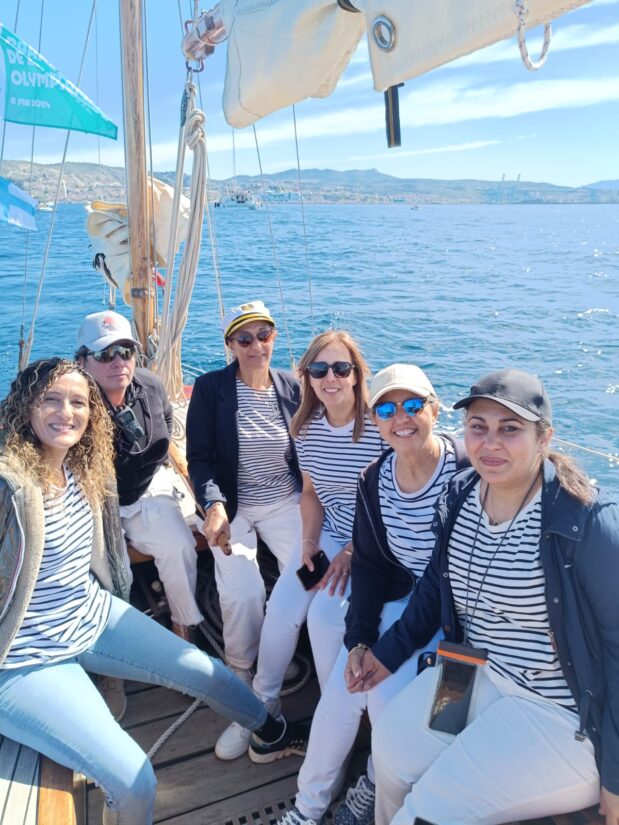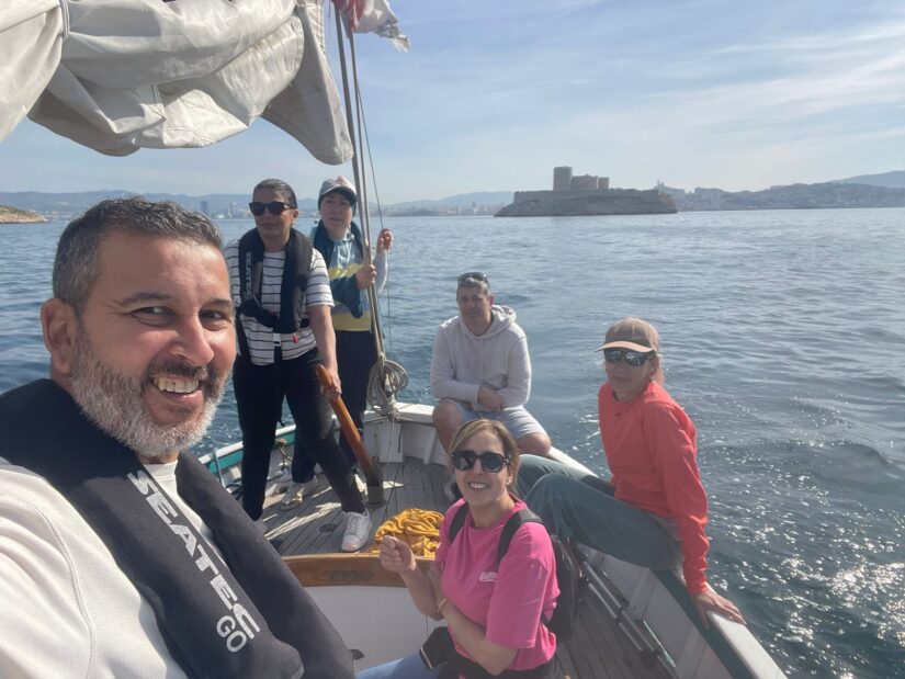 Le groupe ? 24 femmes réunies par l’association Le Sel de la Vie. Elles ont en commun d’être des ‘’daronnes’’ – mères en argot – et de vivre « dans des cités », éclaire cette habitante de la Belle de Mai, dans le 3e arrondissement à Marseille. Salim Grabsi, cofondateur de l’association, a coconçu ce programme sur mesure « pour renforcer l’autonomie et la confiance de ces femmes exceptionnelles et leur ouvrir de nouvelles perspectives d’avenir ». Certaines, au foyer, ont arrêté l’école tôt. « Maintenant que les enfants ont grandi, elles peuvent envisager de se former et pourquoi pas dans un des métiers de la mer ? Il en existe 800 ». Il les a contactées via des associations implantées dans douze quartiers prioritaires des quatre coins de Marseille. Sarah est par exemple membre des Belles de Saint-Mauront, collectif dédié à l’entraide (administratif, éducation, scolarité) et à la culture. Assia est fondatrice des Femmes de la cité des Hirondelles, dans le 13e arrondissement. Chacune devait proposer une maman de leur secteur, « la plus éloignée de la mer », explique Salim Grabsi.