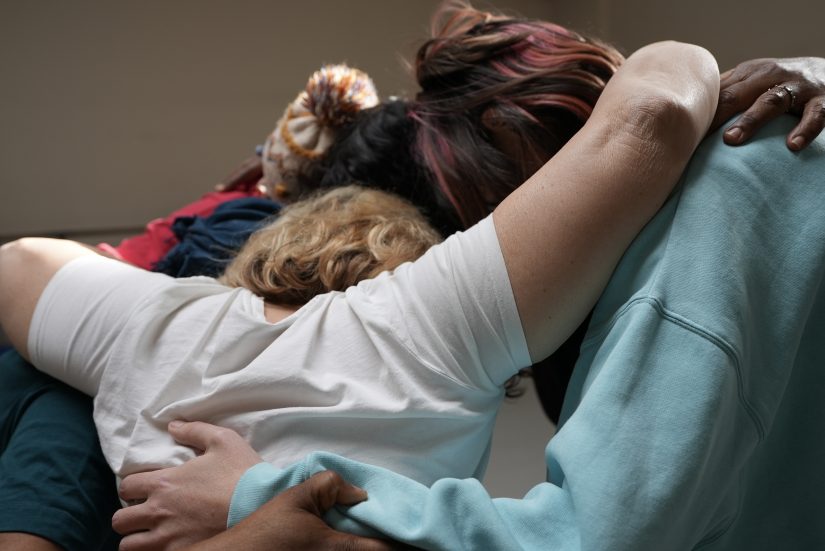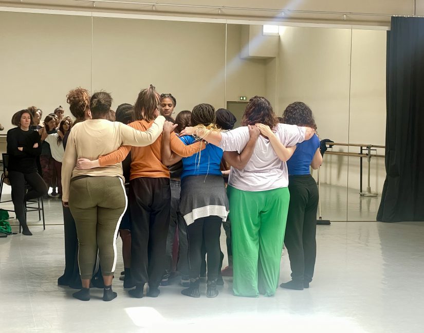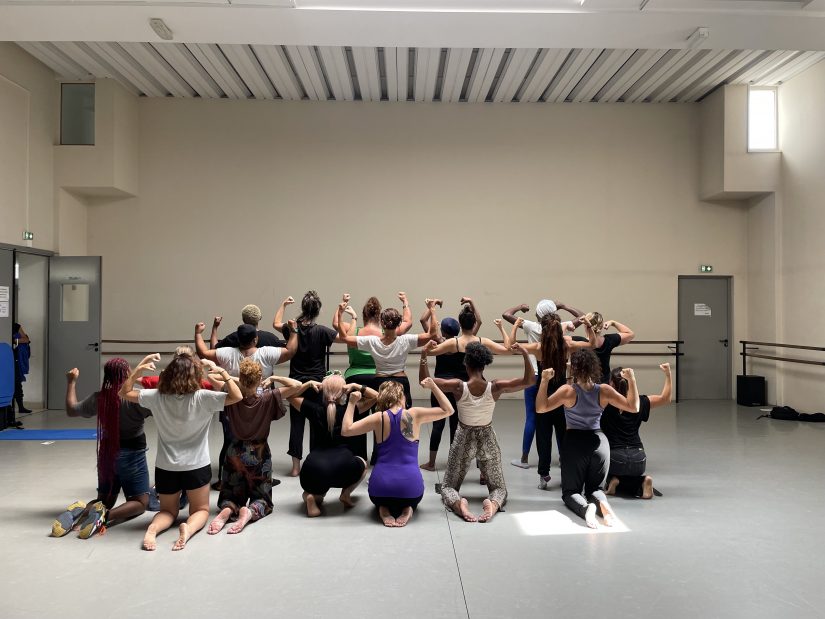 Autre particularité : les deux créatrices dansent aussi, un choix motivé par plusieurs raisons : « Marie et moi avons été aussi victimes de violences, nous aussi on se met à nu et on exprime », raconte la chorégraphe qui confie avoir « pleuré » lors de la séance de yoga le mardi précédent. L’autre raison est qu’elles ne souhaitent pas laisser ces femmes en situation de vulnérabilité seules sur scène. « Ce serait terrorisant », ajoute l’autrice qui veut porter une voix collective. Elles ne sont plus Bruna, Hélène, Manon, Myriam, Fifi, Maryam ou Marie. Elles sont toutes au même niveau. Font corps. Sont ‘’une’’.