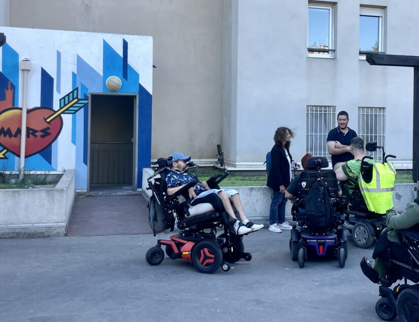 Dans ce but, l’association a créé un nouveau poste en 2023 :  coordinateur HandiToit. Pour créer du lien entre les résidents, mais également avec les autres habitants de l’immeuble et avec les gens du quartier. L’animateur, ce jour-là Thibaud, organise différentes activités dans l’espace de vie partagée, situé au même endroit que la permanence – ateliers d’écriture, cafés blabla, séances de cinéma. Et à l’extérieur, avec prochainement : balade à Hyères et déjeuner à la Villa Mady, un trois étoiles à Cassis.  « L’animateur fait aussi de la prévention avec les gens de l’immeuble, pour qu’ils ne bloquent pas l’ascenseur, par exemple », explique Julie Boueri. Un peu plus tard, Thibaud poussera du trottoir un matelas deux places. Les personnes en fauteuil n’auraient pas pu passer.