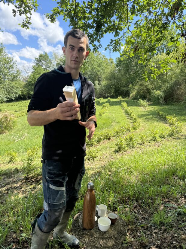 Au bout de trois ans d’expérimentation, Mikel Esclamadon est satisfait. Ses théiers « poussent bien » et donnent du « bon thé ». Deux marqueurs importants. En effet, « ça peut bien pousser, mais donner du mauvais thé ». Pour parvenir à ce résultat, il lui a fallu cependant procéder à des ajustements, particulièrement après la sécheresse de 2022, qui a vidé ses citernes d’eau de pluie. « Une catastrophe, j’ai perdu 1000 plants, que des boutures, se désole le paysan. Particulièrement sur la dernière parcelle qui est bombée ». Il a depuis mixé l’origine de ses plants avec ses propres semis, plus résistants. Et planté, au milieu, des arbres à croissance rapide, « si un jour la sécheresse revient », ponctue le Basque qui observe désormais des hivers pluvieux et des étés secs.