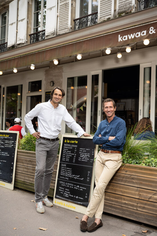 # …et de rencontres. Kevin André, ancien professeur en innovation sociale à l’ESSEC, a fondé Kawaa en 2014, sous la forme d’une plateforme numérique collaborative. Elle visait alors à recréer des liens sociaux grâce à des rencontres conviviales à thème (fraternité, santé, bien-vieillir, etc.) organisées par et pour les habitants d’un quartier. Le modèle évolue en lieu en 2020 suite à sa rencontre avec Alexis Motte. Celui-ci vient de l’immobilier d’entreprise, il rejoint l’équipe en tant que directeur général. Shirley Kohn est donc la troisième du trio. Après avoir travaillé dans la communication de films engagés, elle accompagne le développement des Kawaa en tant que directrice des opérations,