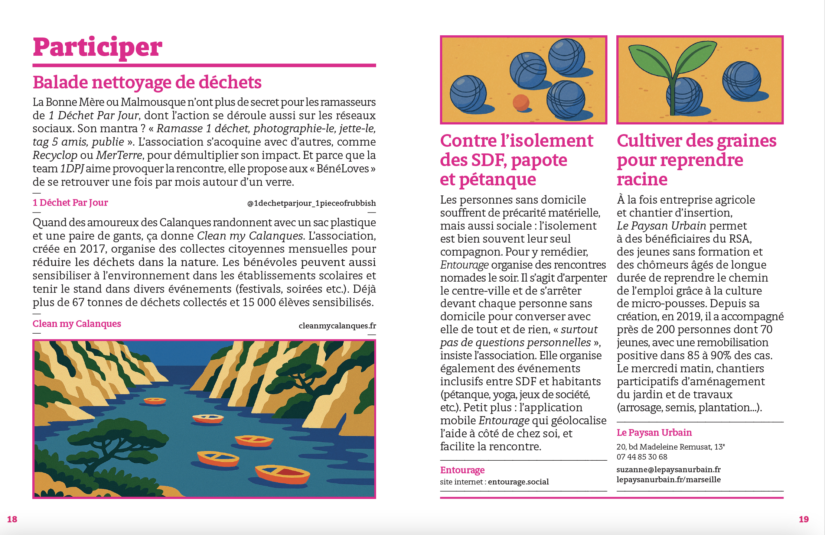 Au risque de se répéter, celui dont nous sommes le plus fiers, parce que fruit d’un travail collectif, c’est notre Guide du Marseille Désirable. 130 pages, 230 adresses, 60 illustrations qui dévoilent une autre manière de « consommer » et vivre Marseille. Nous avions déjà fait les présentations ici.