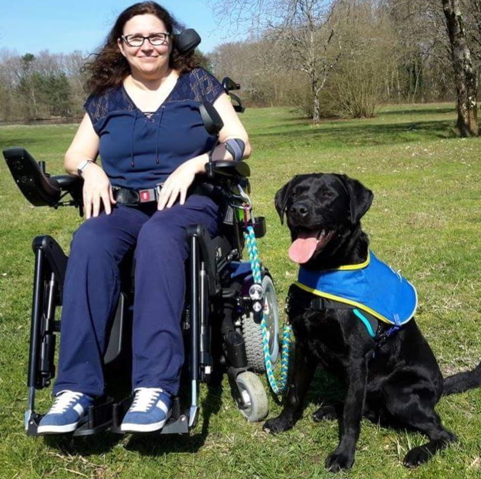 Nathalie Andréo : « Jagger est mon compagnon de vie. À part les aides à domicile, on est que tous les deux. Je souffre d’une maladie neurologique dégénérative. J’ai notamment des vertiges et du mal à coordonner mes mouvements. Jagger me suit partout pour voir si j’ai besoin d’aide ou si je ne vais pas tomber. Il ramasse les objets qui m’échappent, m’aide à défaire mes chaussettes, ouvre les placards, va chercher le camembert dans le frigo et le pose sur la table. Exactement à ma place ! Au supermarché, il me prend les produits dont j’ai besoin en bas du rayon et tend mon porte-monnaie à la caissière. Pareil chez la boulangère, sauf qu’elle fait le tour du comptoir pour me donner la baguette, sinon Jagger mangerait tout ! Il est avec moi depuis 2017.