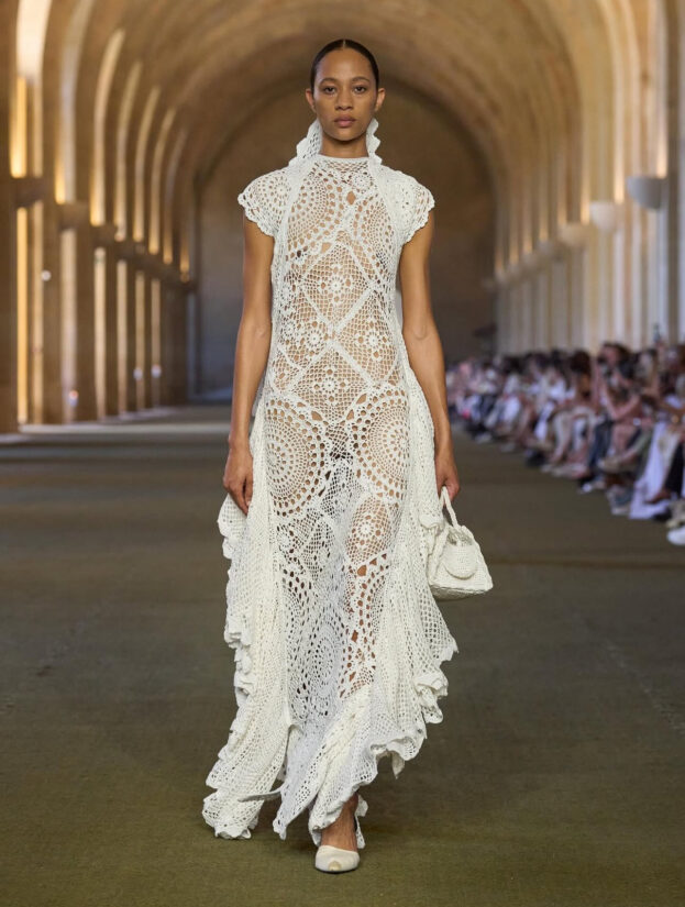 Robe de mariée by Les Mains de Mamie au défilé Jacquemus. ”Le Paysan” / collection printemps-été 2026 au sein de l’Orangerie du Château de Versailles @DR