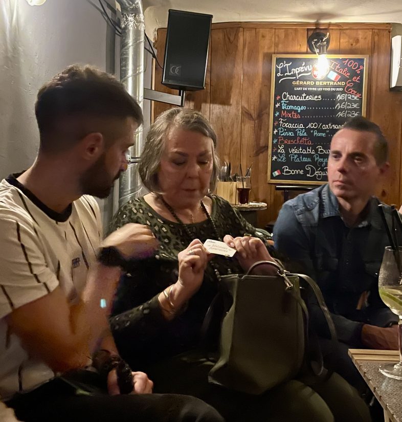 L’Apéro de la mort au bar l’Imprévu se termine, les participants aimeraient poursuivre cette parenthèse chaleureuse par un WhatsApp @Marcelle