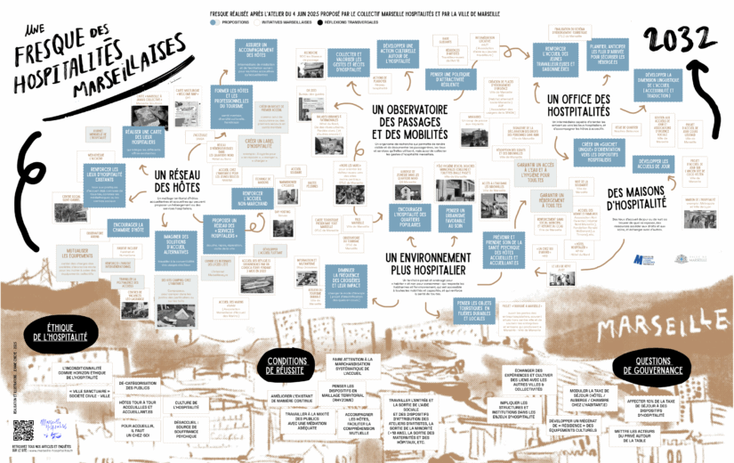 « L’hospitalité ne peut plus reposer sur des initiatives isolées. Elle doit devenir une véritable politique publique. Marseille a tous les atouts pour devenir la première ville d’hospitalités de France – les acteurs sont là, les besoins aussi. Mais pour passer à l’échelle supérieure, il manque deux choses : des moyens financiers et une réelle visibilité. Après nos enquêtes et la réalisation de la Fresque de l’hospitalité, nous avons formalisé un Carnet des hospitalités marseillaises, rassemblant 60 propositions concrètes pour la ville. Ce document sera présenté aux candidats aux élections municipales le 26 novembre 2025. Le défi ? Faire de l’hospitalité une priorité politique ».