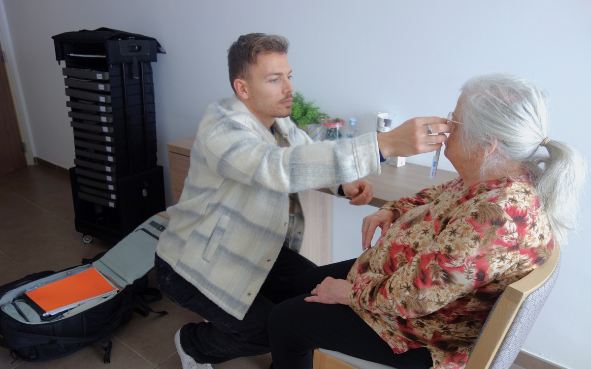Et ce laps de temps peut s’allonger lorsque la personne demandeuse n’a pas d’ordonnance. Ce qui est le cas d’Irène, elle aussi résidente de l’établissement Sainte-Marthe. Cette Marseillaise de toujours a cassé sa paire au début du mois de janvier. Ne pouvant se déplacer chez un ophtalmologue pour refaire le bilan complet de sa vue, c’est Maxime Bonnomet qui l’a réalisé. « On profite de ce moment pour s’assurer de la bonne santé visuelle de la personne car on en est en quelque sorte le garde-fou. Au moindre symptôme, on prévient l’établissement et/ou la famille qu’un examen plus approfondi chez un ophtalmologiste est souhaitable », souligne-t-il. Tout étant en ordre pour Irène, il a pu s’organiser avec son médecin traitant pour obtenir la précieuse ordonnance. Une étape supplémentaire qui a augmenté le temps d’attente pour la senior.