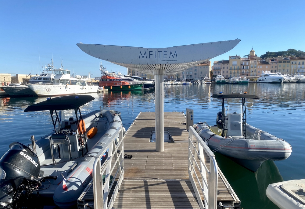 Depuis l’été dernier, un ponton unique en son genre flotte dans le port varois de Saint-Tropez. Ses particularités sont multiples, à commencer par la plus visible : son ombrière. Au-delà de seulement protéger du soleil, elle produit de l’électricité. Jusqu’à 32 mégawattheures (MWh) par an pour une panne entière (quatre pontons de 12 mètres chacun), grâce à des panneaux solaires photovoltaïques. « Soit l’équivalent de la consommation annuelle de 43 bateaux », précise Thomas Aboulinc. Et le fondateur de One Concept Marine, l’entreprise à l’origine de cette création, d’ajouter : « C’est justement parce qu’on a un jour attendu en plein soleil un bateau à un port que l’on a eu l’idée de ce ponton ». Un projet initié en 2021 avec des camarades d’études, en fin de cursus d’ingénieur en mécanique et plasturgie. Trois ans de travail seront ensuite nécessaires pour arriver au produit final. Baptisé « Meltem » (lire bonus), il est prêt pour un déploiement à grande échelle.