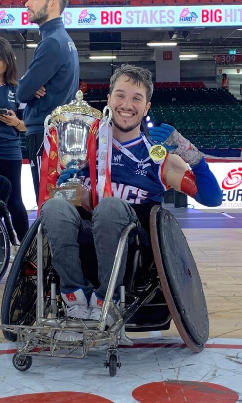 Si les premiers mois sont forcément durs, le jeune homme commence à accepter sa situation lorsqu’il arrive à utiliser un fauteuil manuel, puis qu’il découvre le rugby fauteuil. « Il est sûr que je n’ai pas eu le temps de faire de crise d’adolescence, j’ai muri d’un coup ! glisse-t-il avec un sourire. C’est ma sœur qui m’a parlé du rugby fauteuil quand j’étais à l’hôpital. J’avais commencé à faire du rugby juste avant mon accident. Le côté sport de contact, ainsi que les valeurs du rugby me plaisaient. J’ai commencé le rugby fauteuil alors que j’étais encore en rééducation ».
