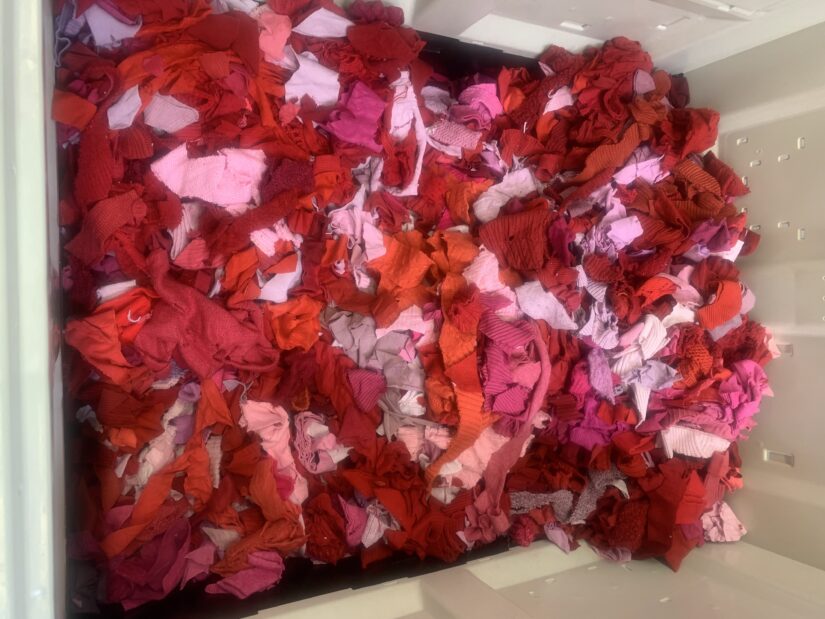 Cest dans les couloirs du CETI (le Centre Européen des Textiles Innovants), à Tourcoing, que les ambitions d’Isabelle prennent forme. Sous son œil et celui de ses stagiaires, les fibres usées venues de bennes de collecte entament une nouvelle vie. Avec le soutien de l’éco-organisme Refashion (qui trouve des solutions pour collecter, réemployer et réparer les tissus en fin de vie), Vivaluz mène ici un ambitieux projet dupcycling : fabriquer un matériau 100% recyclé à partir de vêtements usagés, tout en maîtrisant la couleur et la texture.