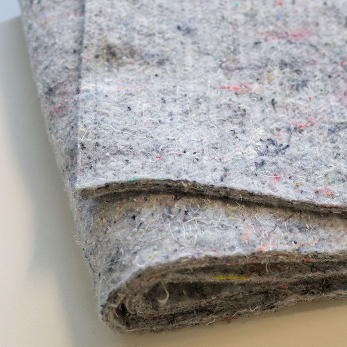Deux procédés permettent de les transformer en plaques de tissu : la thermofusion, qui agglomère les fibres par la chaleur, ou laiguillage, qui les entrelace mécaniquement. En bout de chaîne, un rouleau 100% recyclé. « On produit jusqu’à 500 kg de nappe textile par jour, mais la production varie en fonction des fibres utilisées. Certaines sont plus faciles à travailler que d’autres.  Les pulls noirs, par exemple, donnent un gris très uniforme, facile à travailler », note Isabelle.