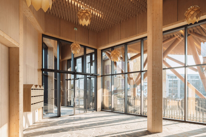 « Le projet répond d’abord à nos objectifs d’emploi de matériaux biosourcés et de leur inscription dans cet environnement. Ce qu’on utilise le plus dans nos nouvelles constructions urbaines, c’est le bois. Bois, terre, paille, voilà le nouveau BTP ! », se réjouit Margot Belair, chargée de l’urbanisme à la Ville de Grenoble. Car dans la grande agglomération iséroise, l’idée est bien de faire du bois le nouveau béton. Une trame constructive préfabriquée, puis assemblée. Des façades où la matière brute se fait manifeste et permet ainsi d’éviter des centaines de tonnes de CO2. Le tout signe une ville bas carbone et agréable à vivre.